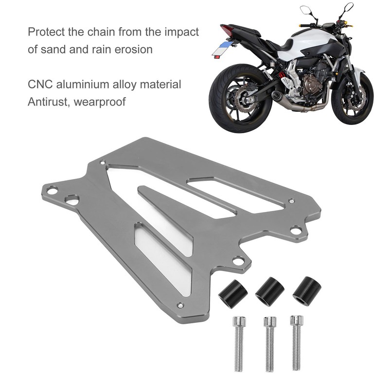 1、Fitment: Replacement for MT‑07 2013‑2020, replacement for MT‑07 tracer 2013‑2020, replacement for FZ‑07 2015‑2020. 2、Function: The front sprocket guard can protect the chain from the impact of sand and rain erosion, practical in use. 3、Good Decoration: Finely crafted, stylish, smooth and colorfast, this sprocket protector can upgrade the look of a motorcycle. 4、CNC Aluminum Alloy: The engine chain guard is made of high quality CNC aluminum alloy material with high strength and durability. 5、Simple Operation: Front sprocket cover is simple to install, direct replacement, no modification, convenient to use.