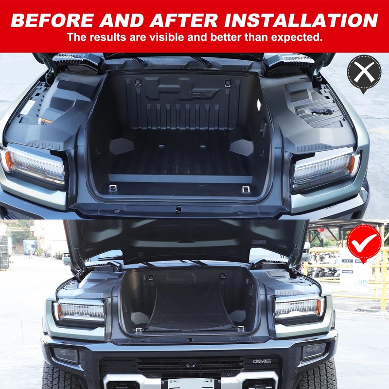 - Compatible Models:The Front Trunk Cargo Net Compatible with Hummer EV 2024 2025+.The size of the original car is customised. In order to ensure that the accessories you need are the same as our products, please confirm your car model before purchase.