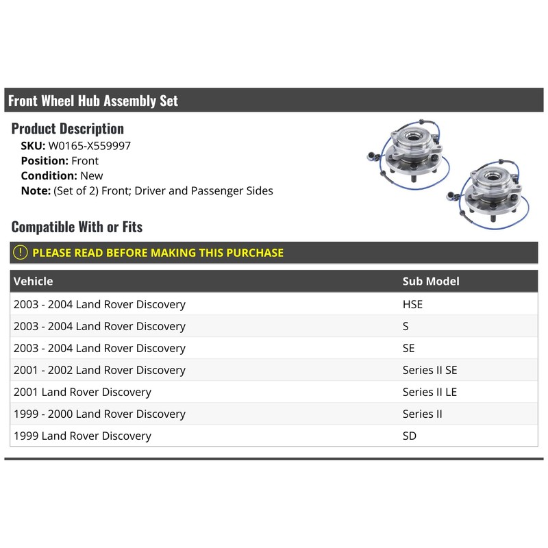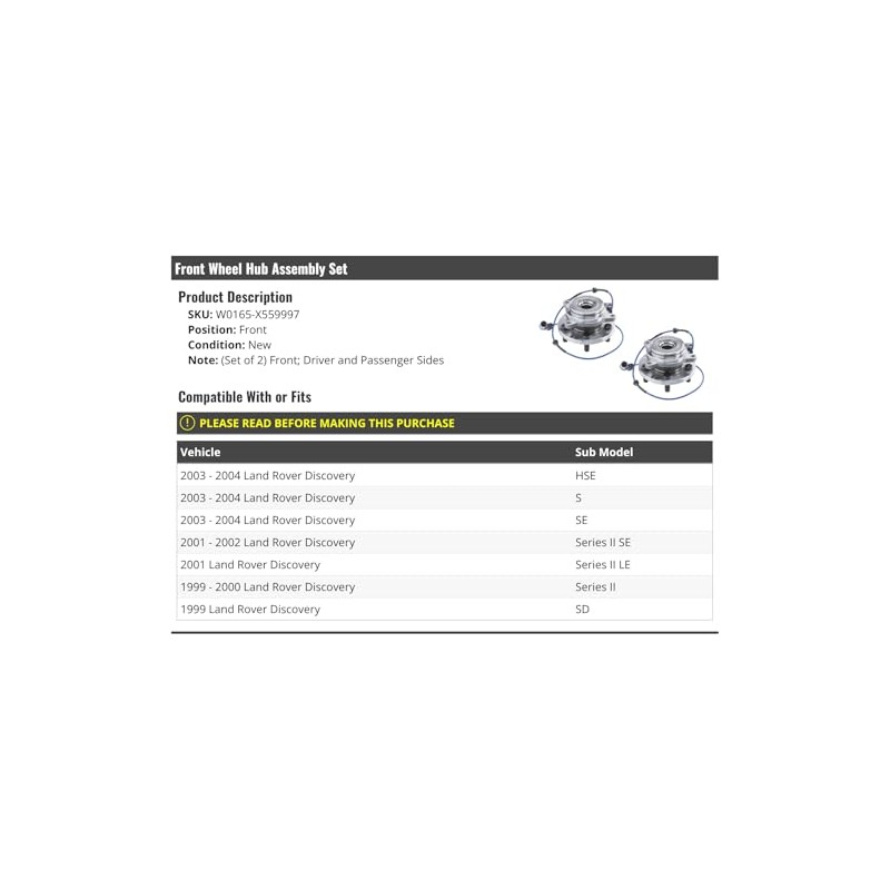 Front Wheel Bearing Hub Assembly Set of 2 - Compatible with 1999-2004 Land Rover Discovery