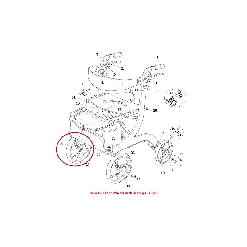 Front Wheels (Pair) with Bearings for Drive RTL10266 Nitro Rollator Walker (Serial # 2A1606301542 and newer ONLY)