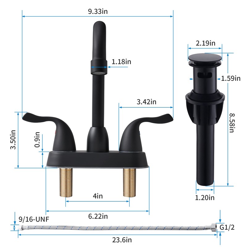 - [WITH POP-UP DRAIN] The black bathroom faucet is accompanied with pop-up drain, which is simpler and more convenient to use, easier to seal and release the drain TIP: The equipped pop up drain is only suitable for bathroom sink with overflow