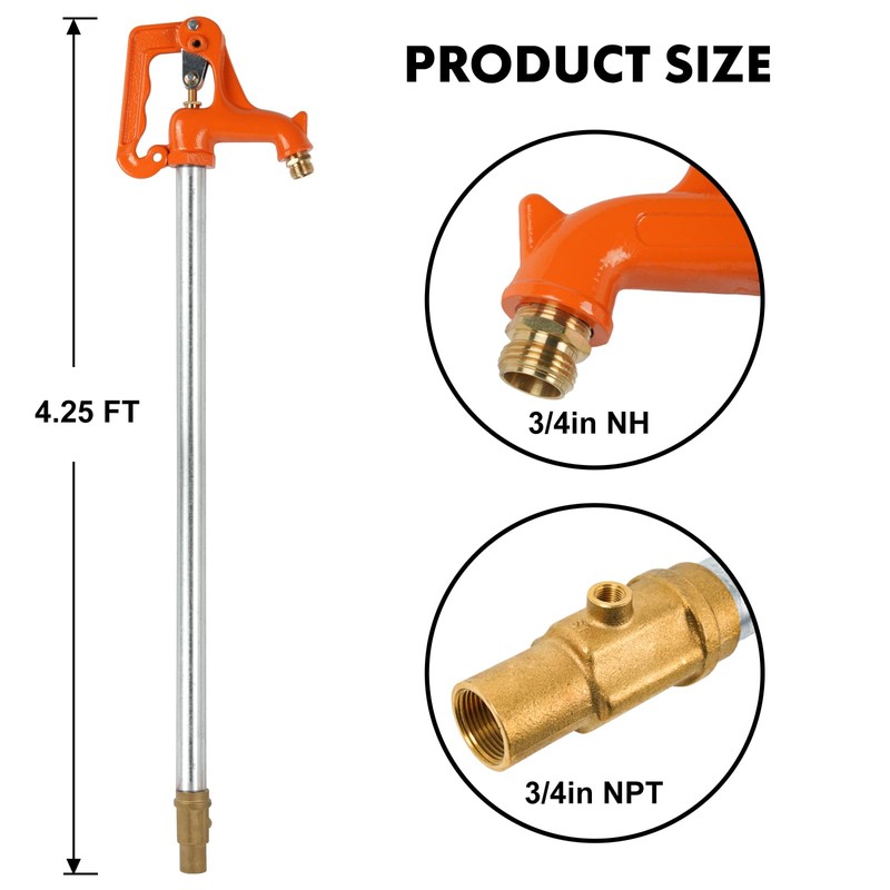 - All-Weather Performance: This frost-free yard hydrant ensures a steady water supply, whether it's freezing winter or scorching summer. Perfect for irrigation, drinking water, and equipment cleaning.