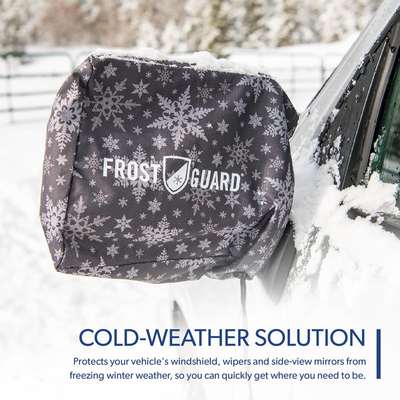 • FrostGuard Plus | This full protection windshield cover protects your vehicle's windshield, wipers and side-view mirrors from freezing winter weather including snow, frost and ice. With two available sizes, you can find the perfect balance of a snug fit and great coverage against wintery elements.