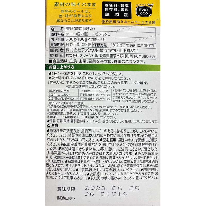"Frozen" Fancel Freshly Pressed Kale Green Juice, Instant Freezing, 7 Bags, 24.7 oz (700 g) x 2