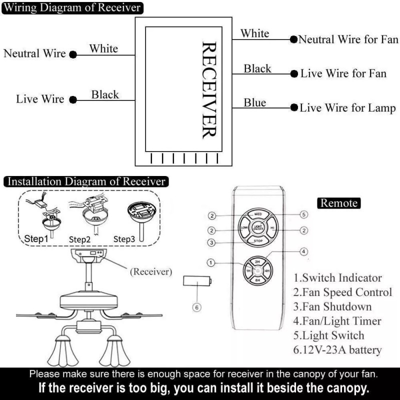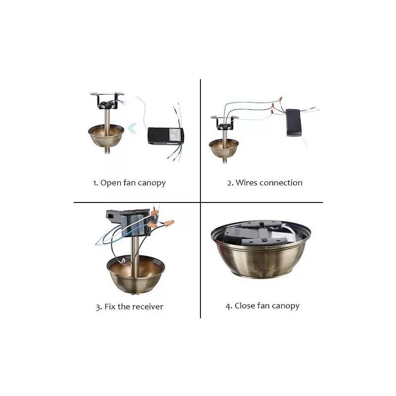 -OJO- Si tu ventilador ya viene de fabrica a control remoto, este control NO es compatible, Habría que des habilitar el control de fabrica y habilitar éste, lo cual no viene especificado en las instrucciones e invalida la garantía.