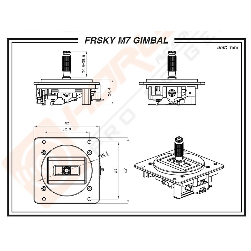 - Upgrade your Taranis Q X7 with this plug-n-play high resolution M7 Gimbal from FrSky. The highly sensitive Hall sensors will not wear out quickly. It has an extremely smooth feel with the quad ball-bearings and the metal outer construction. Thicker 4mm stick ends give you a solid link to your controls. Fully adjustable tension and easily disable the self centering axis with one screw. This is a must have accessory for achieving those precision flight maneuvers. FeaturesHall sensor4 ball-bearings