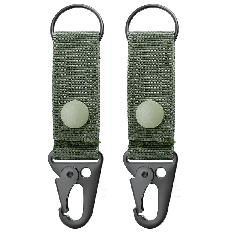 FRTKK Tactical Molle Key Ring Gear Key Keeper Nylon Belt Keychain Molle Webbing Key Clip Buckle for Belts Molle Bags Tactical Backpack Vest (Army green - (Pack of 2))