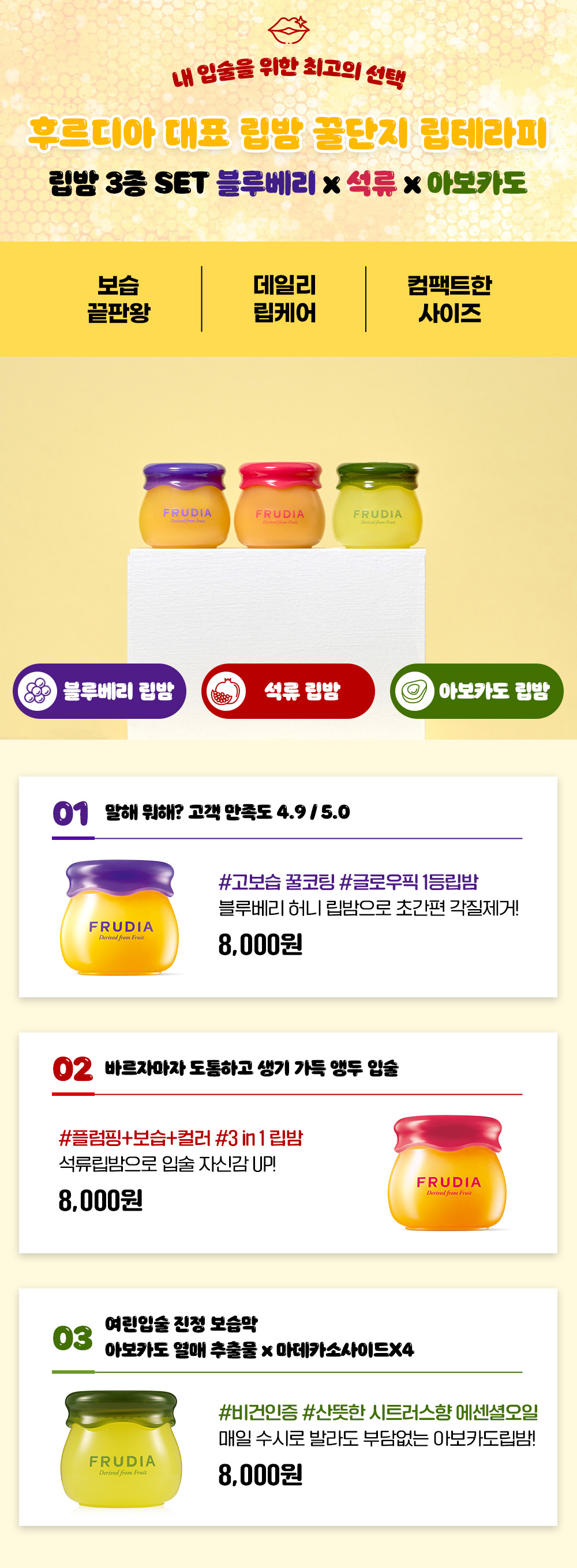 후르디아 꿀단지 립테라피 고보습 립밤 3종 세트(블루베리+석류+아보카도)