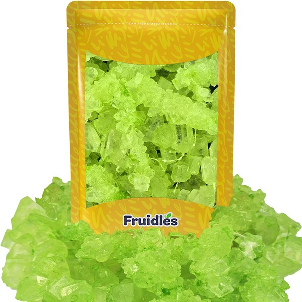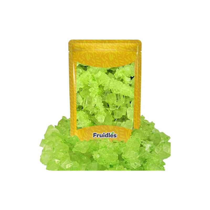 Fruidles Green Watermelon String Rock Sugar For Tea and Coffee, Clear Pure Cane Sugar Crystals, Dissolves Quickly, Resealable Bag (Half-Pound)