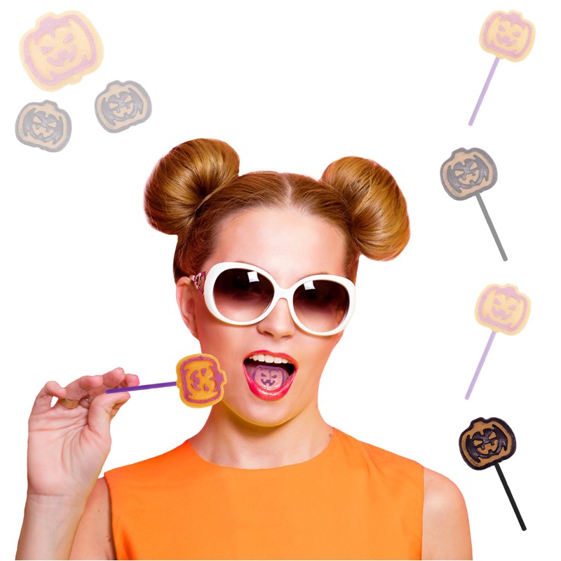 - LOLLIPOPS FEATURES: Orange & Grape Pumpkin Designs. This delicious treat is a festive addition that works throughout the entire season. Put a bowl of Orange & Grape Pumpkin Mix Lollipops out during a pumpkin carving party, or keep them on hand for trick-or-treaters.
