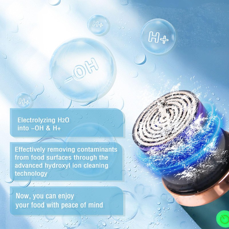- 𝐄𝐟𝐟𝐞𝐜𝐭𝐢𝐯𝐞 𝐂𝐥𝐞𝐚𝐧𝐬𝐢𝐧𝐠 - Utilizing advanced hydroxyl water ion purification technology, the fruit and veggie cleaner can swiftly clean the grime on the surface of food (fruits, vegetables, seafood, meats, etc.) without compromising taste or nutritional value