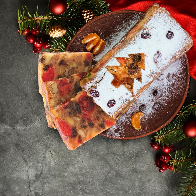Old Fashion Claxton Fruit Cake 3-1 Lb. DARK Recipe Loaves - Individually Wrapped For Freshness in our Signature Red-White Carton - 3-pack