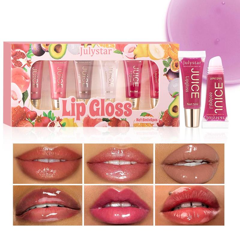 Fruit Flavor Lip Gloss, 6 Counts/set Moisturizing Nourishing Lip Glaze, Glossy Lip Glaze Stick, Plumping Lip Oil Lip Stick for Girls & Women