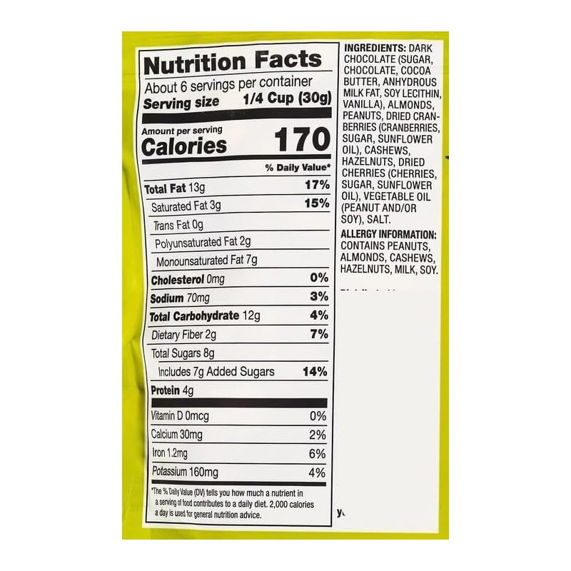 Fruit & Nut Gold Abound Emblem Trail Mix - Dark Chocolate, Almonds, Peanuts, Dried Cranberries, Cashews, Hazelnuts, Cherries (1, 6oz Bag) Snack Snacking Sweet Treat Food