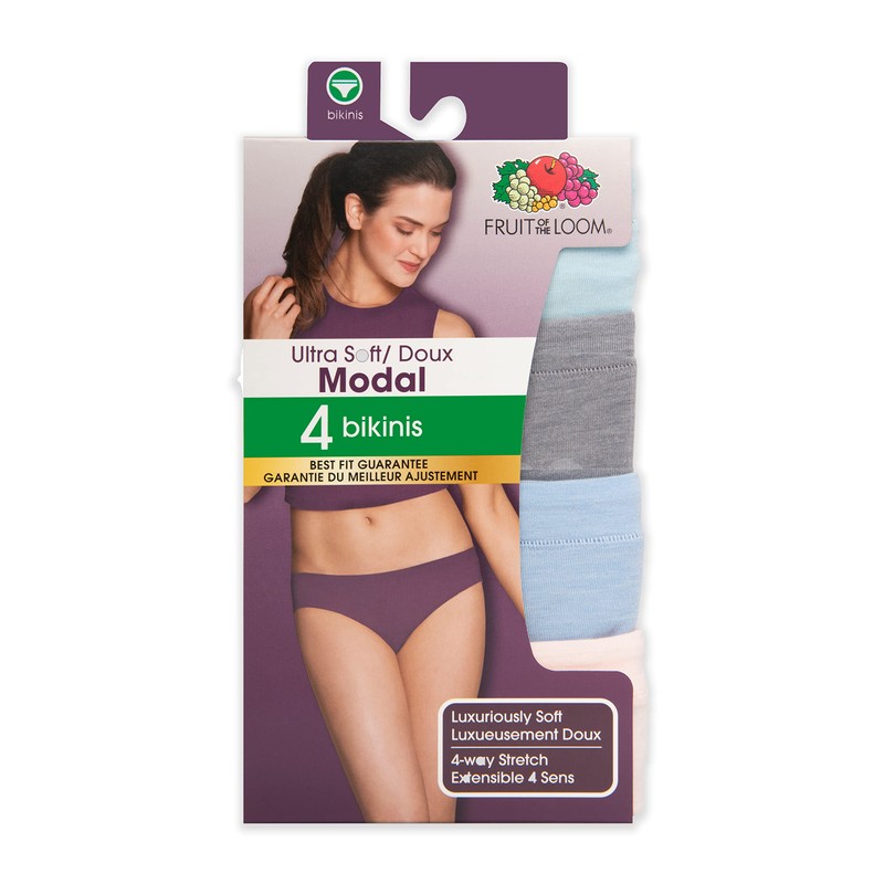 Fruit of the Loom Womens 4PK Ultra Soft Modal Bikini Panty, Assorted Colours, Size 5