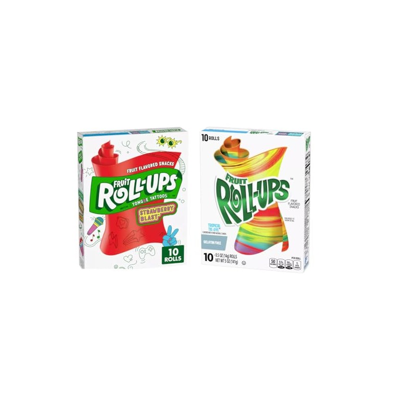 - Two varieties in a double pack - The Fruit Roll-Ups Tropical Tie Dye & Strawberry Blast combine exotic fruit variety with intense strawberry flavour. A varied mix for those who love colourful snacks.