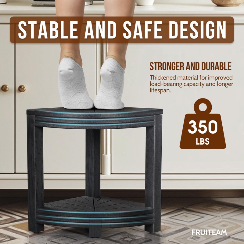 • MULTIFUNCTIONAL USE: The dual-layer shower stool supports up to 350 lbs. It's perfect for sitting, holding items, and also serves as a stylish shower stool for shaving legs or foot care