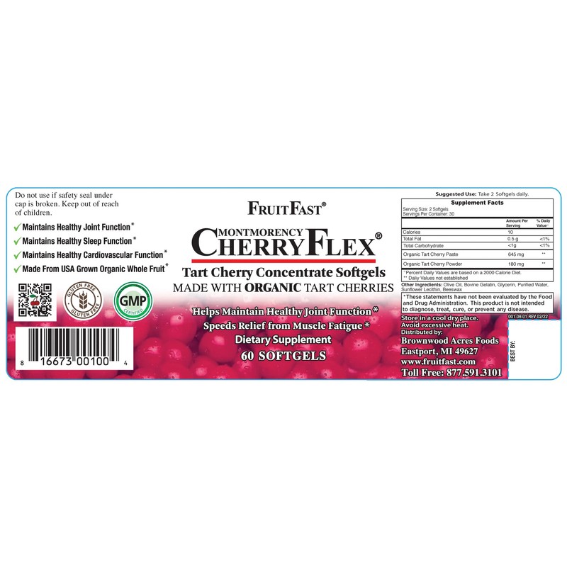FruitFast CherryFlex 100% Red Tart Organic Cherry Concentrate Supplement - 60 Count - Non-GMO and Gluten Free - Promotes Healthy Joint Function*