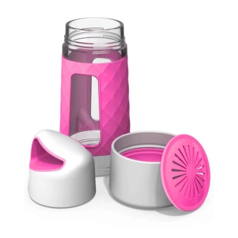 Fruition Fruit Infuser Water Bottle Instant Infusion Basket for Fruit and Tea - Durable, Leak Proof, 20oz Capacity, BPA Free - Blue (PINK)