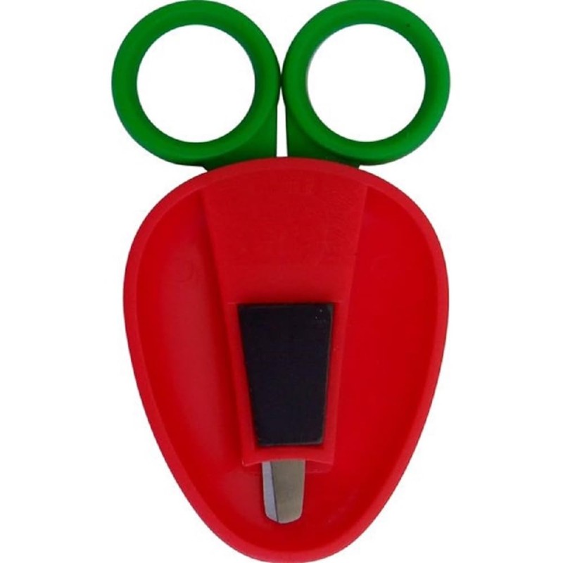 - A pair of scissors in a cute fruit cover. The cover has a magnet. Convenient for storing your refrigerator, whiteboard, etc. Perfect for cutting soft objects such as paper, vinyl If used on metal or hard objects may cause damage and is dangerous. Do not use for cutting cloth or other items. This may cause the sharpness to be reduced