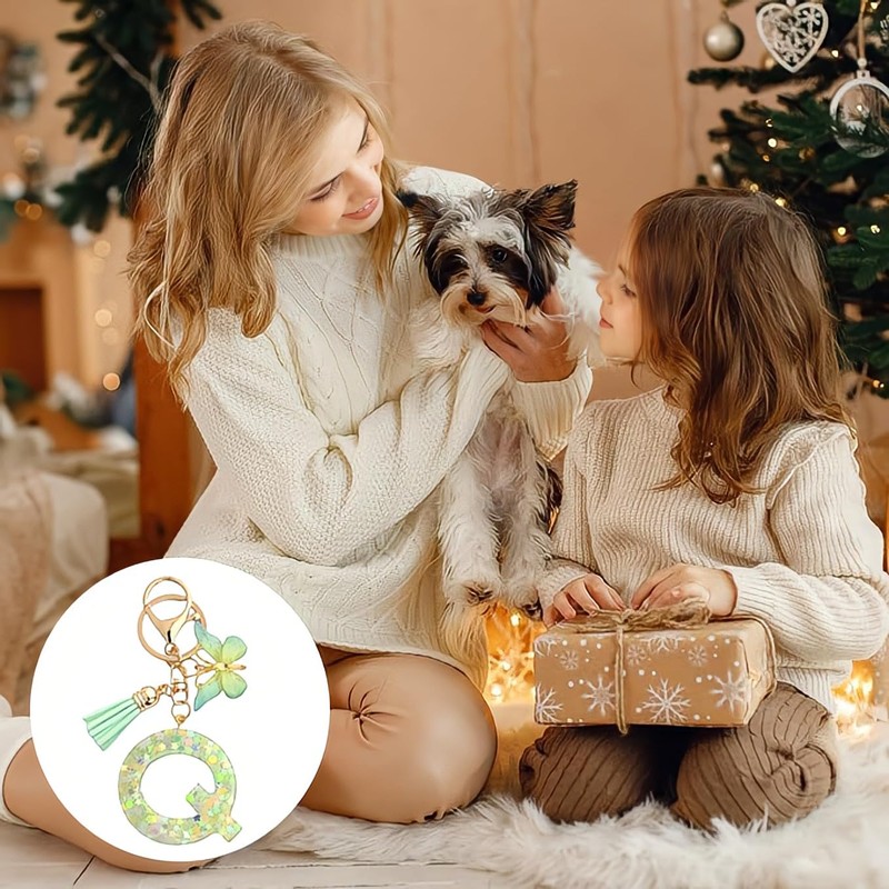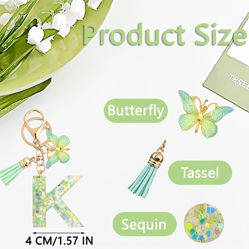 Frundoo Key Chain Letter Keyring Girl Keyring with Initial Letter Green Key Ring Butterfly Gifts for Women, Green-F