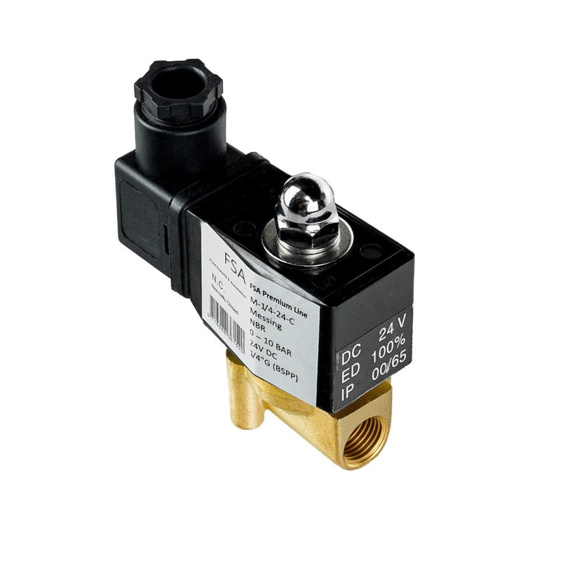 FSA Solenoid Valve Brass 1/4 Inch 24 V DC 0-10 Bar NBR Closed without Power