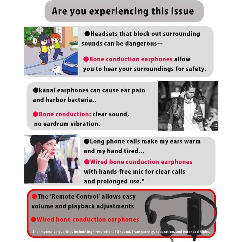 • Features and features of wired bone conduction earphones: This is an attractive item that can be used without covering your ears. 1: Ideal for telework, walking, games, videos, listening music, etc. 2: You can hear the surrounding sound while listening to the sound of your surroundings. Even if there is a noisy surroundings, you can hear the sound through the bone. Also, since you can hear your eardrums without sifting your eardrums, your ears will not be tired even after long periods of use, and your ears will not feel compressed. Weight: Approx. 0.8 oz (24 g) (excluding remote control)