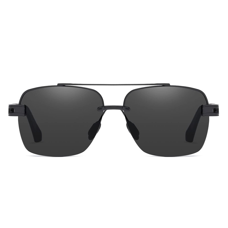 FSK Square Aviator Sunglasses for Men Women Polarized - UV 400 Protection 60MM (Black Frame Grey Lens)