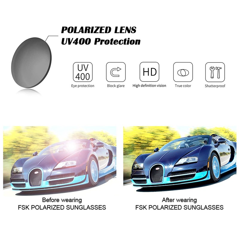 - UV400 PROTECTION - FSK Vision sunglasses are UV400 rated, meaning it can block 99%-100% of both UVA and UVB radiation. UV400 rated sunglasses are essential to protecting your eyes against long- term UV damage and keeping your eyes healthy.