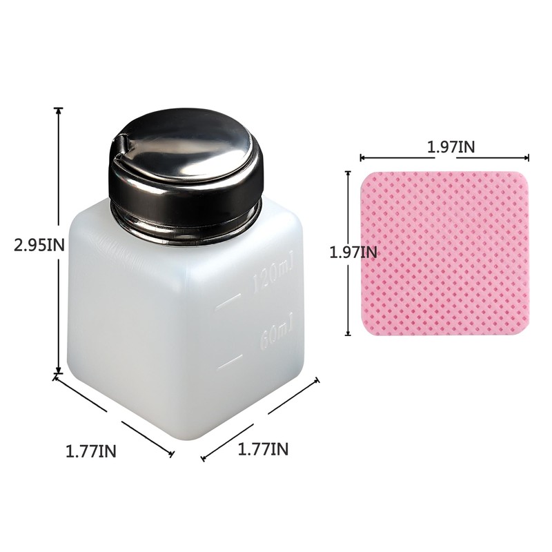 - 【Dimensions】The pump dispenser bottle measures approximately 2.95 x 1.77 x 1.77 inches. Simple and beautiful, easy to carry, suitable for travel. Alcohol dispensers and lint-free wipes are suitable for home and salon use.