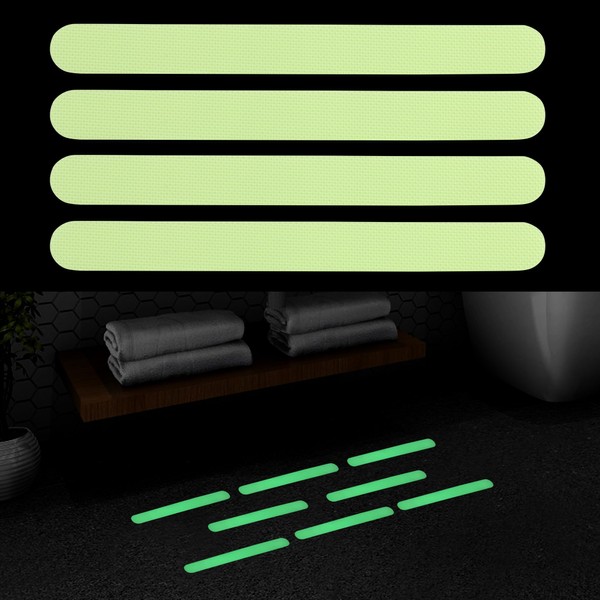 Fssqii 24pcs Luminous Non Slip Bathtub Sticker for Kids Elders Safety Waterproof Anti Skid Tape Strip Anti Slip Decals for Bathroom Shower Tub Stairs Kitchen Floor Swimming Pool (Luminous)
