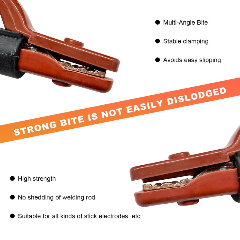 - Practical Function: Designed for welding, this electrode holder ensures efficient connections and minimizes cable breakage at the connection point. The multi-angle slot-saw design of the clamping port maintains a stable clamping force and prevents the electrode from slipping during welding