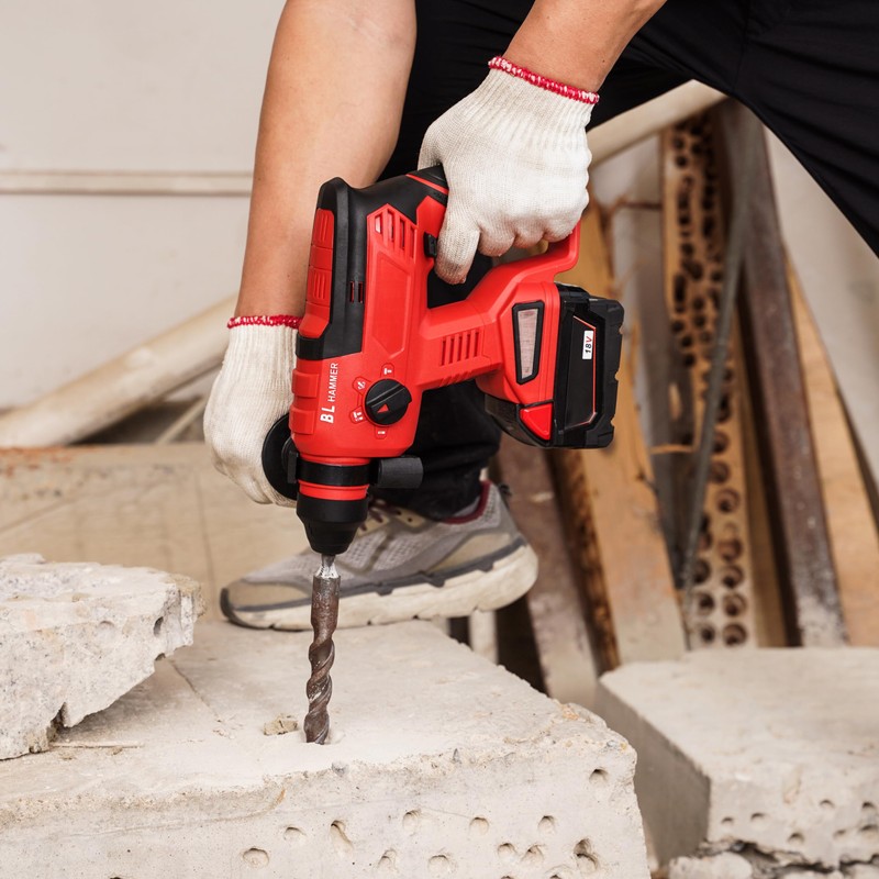 FSYAO 18V Cordless Rotary Hammer Drill, 0-1400 RPM, 0-4500 BPM, 1.7 Joules, LED Light, 2.6kg, 1 Year Warranty (host only)