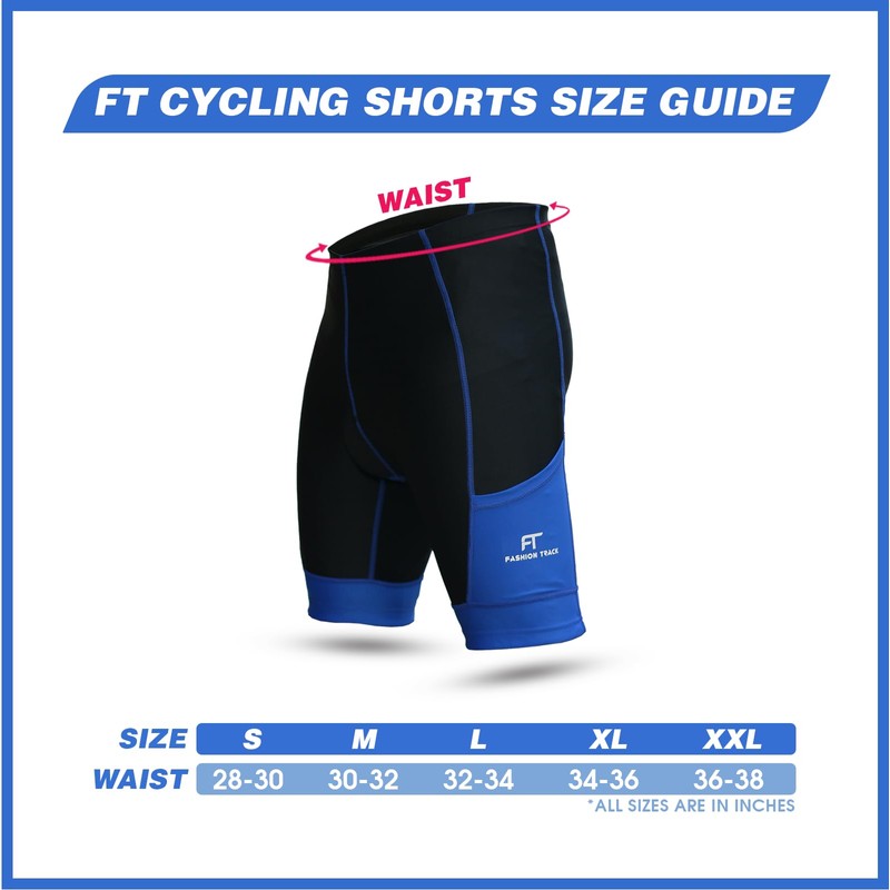 FT Fashion Track Cycling Shorts Mens - MTB Shorts - Padded Shorts with Pockets – (Black/Blue, L)