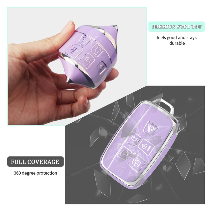 FT FUNTOR Car Key Cover for Range Rover,Suitable for LR4 Range Rover Sport Evoque Jaguar XJ F-pace,5 Buttons TPU for Jaguar Key Fob Case with Silver Edge (Purple)