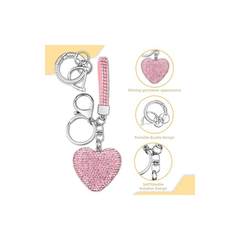 - The Perfect Gift:This bling car accessories set comes with a rhinestone-covered key case, a shiny matching keychain, a cute heart charm,and a short wrist strap with a screwdriver.It's super easy to attach your keys to your bag or belt,so they're always within reach and never lost.Great for anyone who loves a bit of sparkle in their life!!