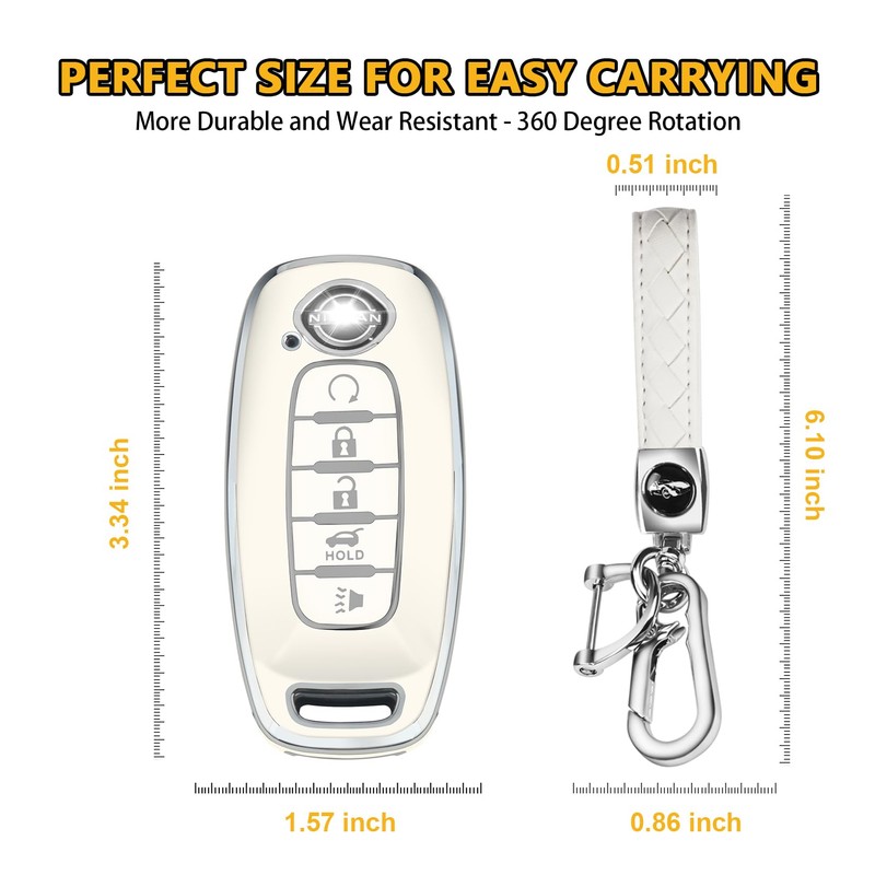FT FUNTOR for Nissan Key Fob Cover,5 Buttons TPU Key Cover with Silver Edge,Compatible with 2023 2024 2025 Nissan Pathfinder Rogue Sentra Versa Patrol Platinum Armada with Keychain (5-White)