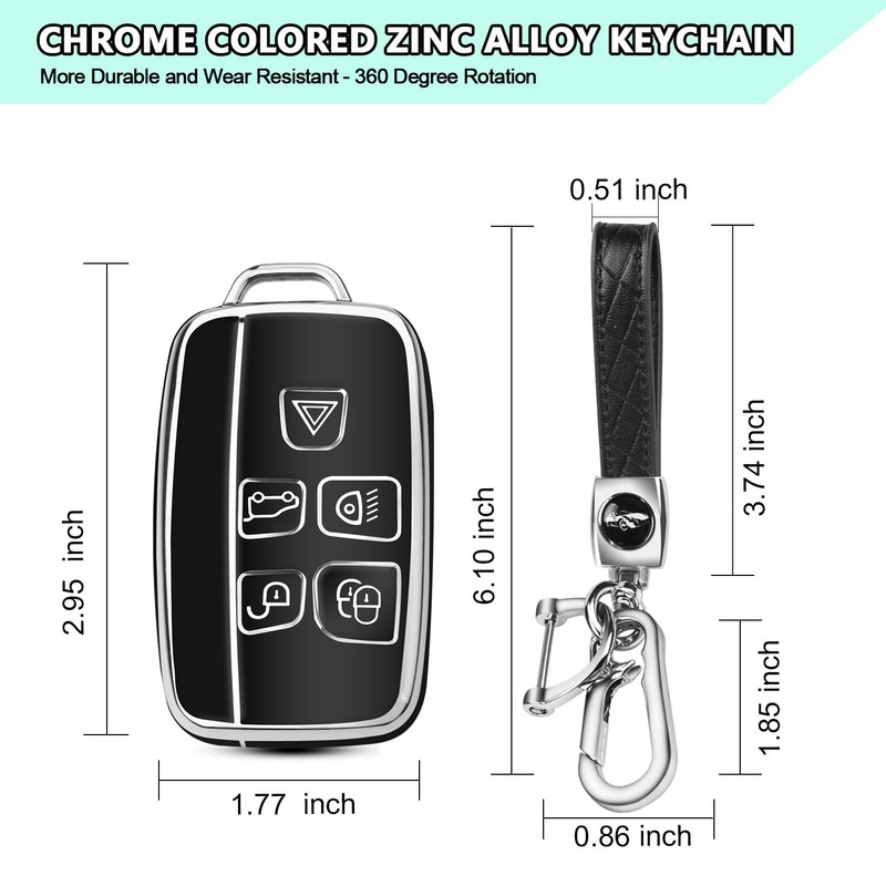 • 【360° Protection】:The for Jaguar f pace key fob cover tightly wraps around the original key, effectively preventing accidental damage to the key during daily use. Equipped with a key fob that can be hung on the side of the backpack or on the belt buckle as you wish, it is both aesthetically pleasing and practical, reducing the possibility of losing your keys and allowing you to have a worry-free journey.