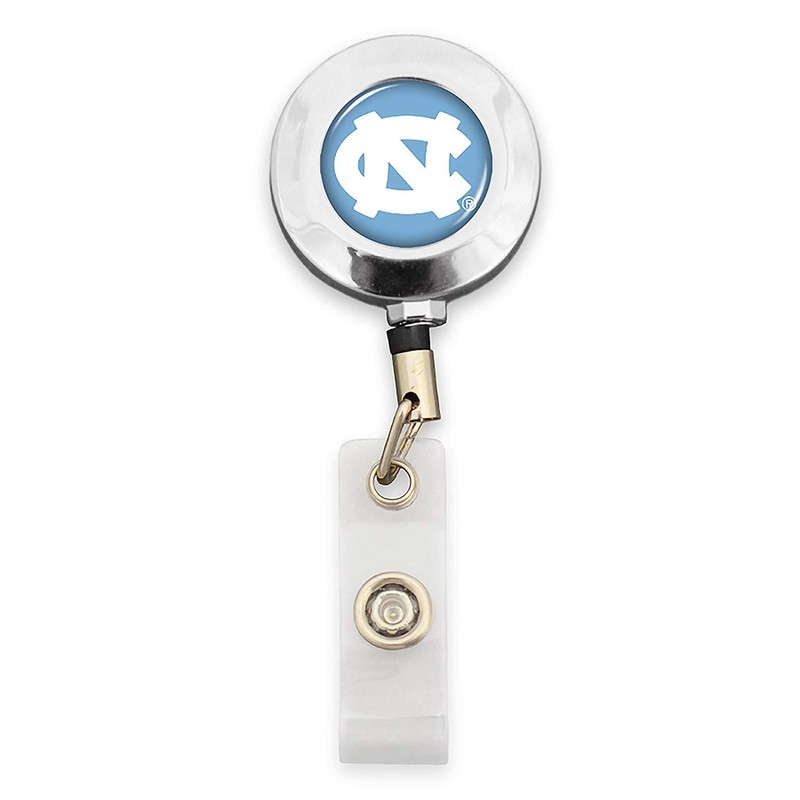 North Carolina Tar Heels Badge Reel. Retractable Badge Holder. Team Logo. Silver Tone Border around Logo. Alligator clip which is great for shirt pocket or belt clip or on a necklace.