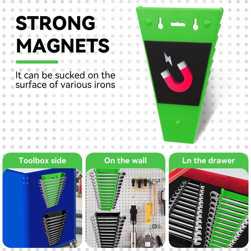 - The Magnetic Wrench Holder is made of durable materials, making it a long-lasting and reliable tool storage solution. It is also easy to install and use, making it a great choice for any workshop.