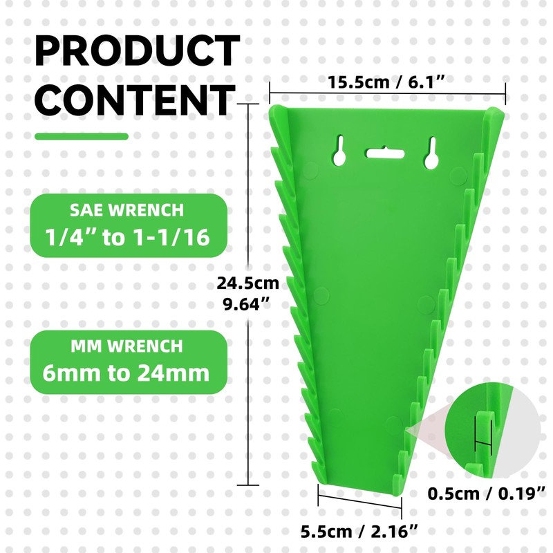 - This Magnetic Wrench Holder is designed to store up to 48 wrenches, ranging from 6mm to 24mm metric wrenches and from 1/4 inch to 1/16 inch SAE wrenches.