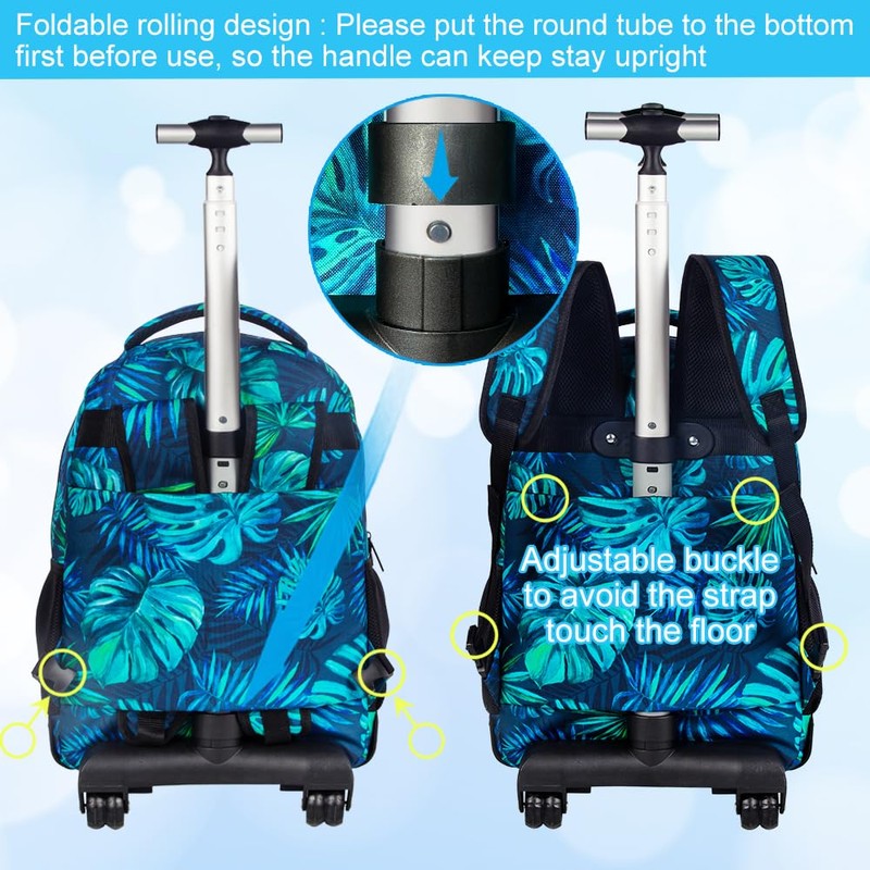 - Dual-use Style Design: The backpack with wheels base can be fixed for easy dragging, not used can be put away, you can use as a rolling bookbag or backpack according to different use scene.