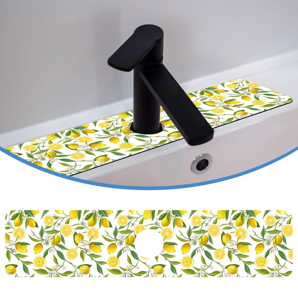 FTJHKUY Lemon Fruit Faucet Mat - Soft Diatom Mud Non-Slip Mat for Kitchen and Bathroom Sinks, 23.5"X5.5"