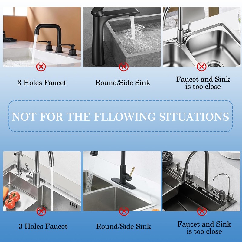 - Multi Size:Our kitchen faucet mat has two sizes,15"x5.5" and 23.5"x5.5",Ø2.50" diameter single faucet hole