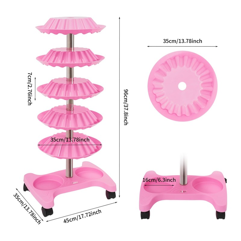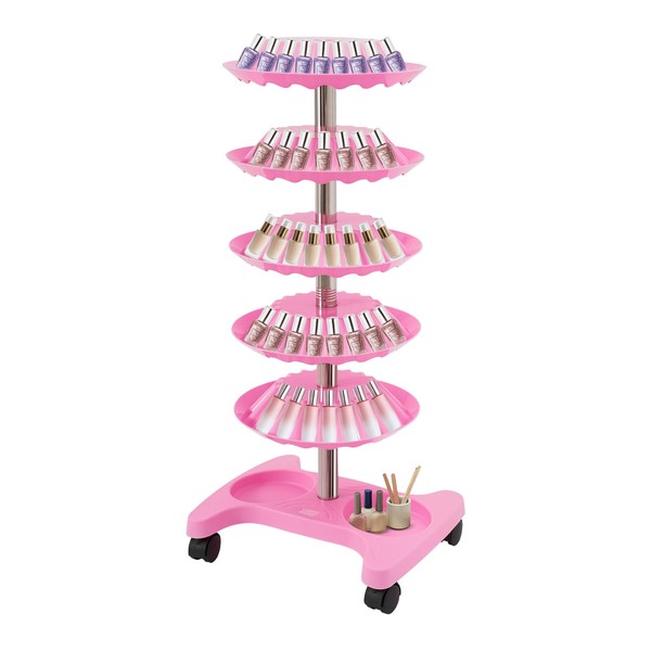 FTUREPAC 5 Tiers Nail Polish Trolley Display Organizer, 360 Rotating Nail Polish Rack Holder with Wheels, Up to 120 Nail Polish, Rotating Essential Oil Display Stand for Home Spa Business Salon, Pink