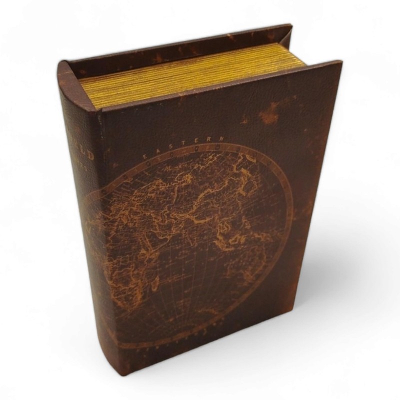 - With her brown-gold splendor, she pretends to be an old ham with world map charm - but pssst, unfold and peep in reveals her true mission. This book box is a master of deception that guardians treasures and confuses glances!