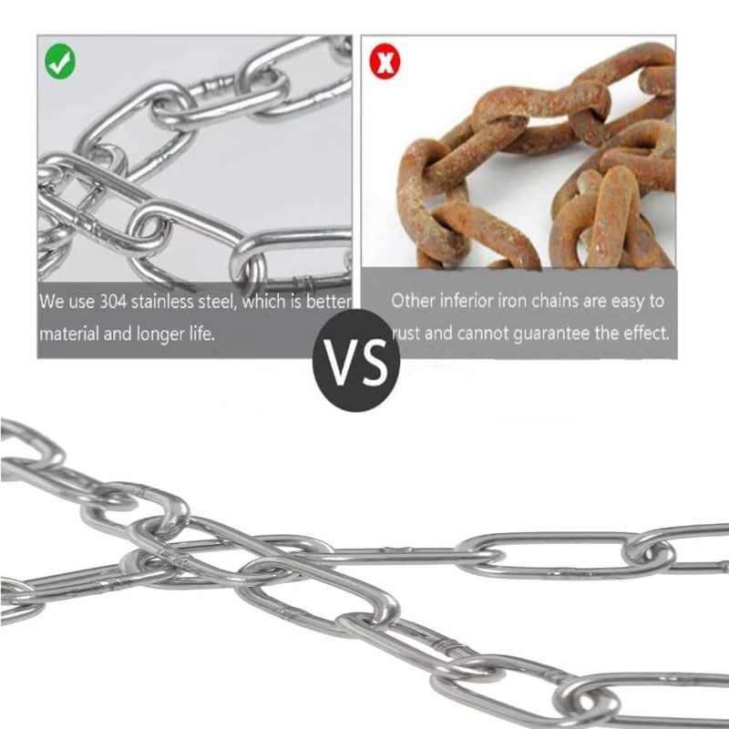 - High quality: stainless steel chain is made of high quality 304 stainless steel, strong and durable. With polished surface and seamless welding, the product has excellent anti-corrosion and anti-rust properties and strength, with a maximum load of 90 kg to meet your daily needs.