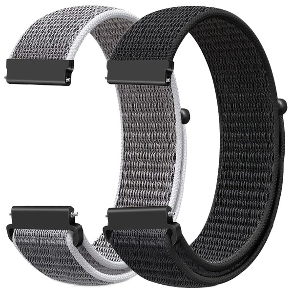 FTYQUEE 2 Pack Nylon Watch Bands Compatible with 16mm 18mm 19mm 20mm 22mm Watch Bands Quick Release Replacement Wristband, Adjustable Stretchy Straps Fabric Bands for Men Women(22mm)