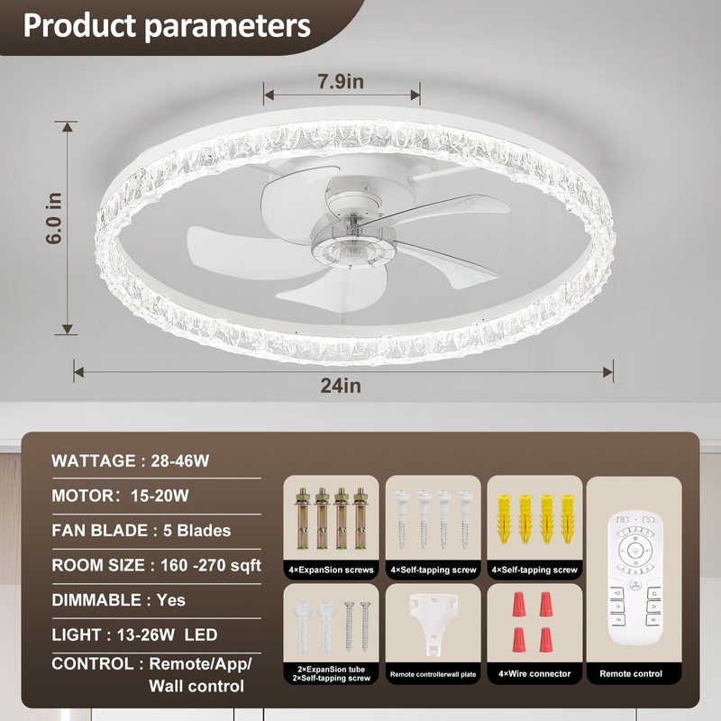 - APP & Remote Smart Control: Control the fan and light anytime with the included remote or smartphone APP; easily adjust fan speed, brightness, and color temperature, or set timers and activate night light mode from anywhere