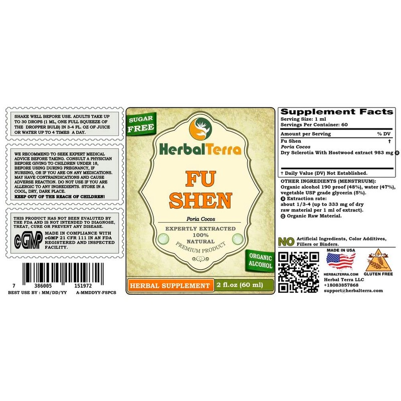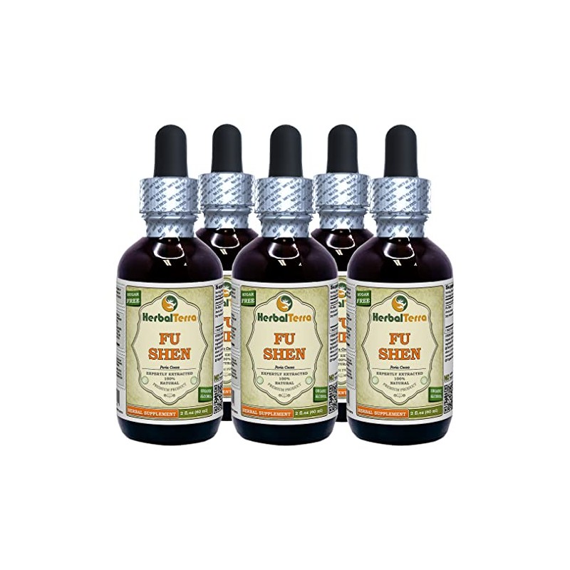 Fu Shen, Spirit Poria (Poria Cocos) Tincture, Dried Sclerotia with Hostwood Liquid Extract (Brand Name: HerbalTerra, Proudly Made in USA) 5x2 fl.oz (5x60 ml)